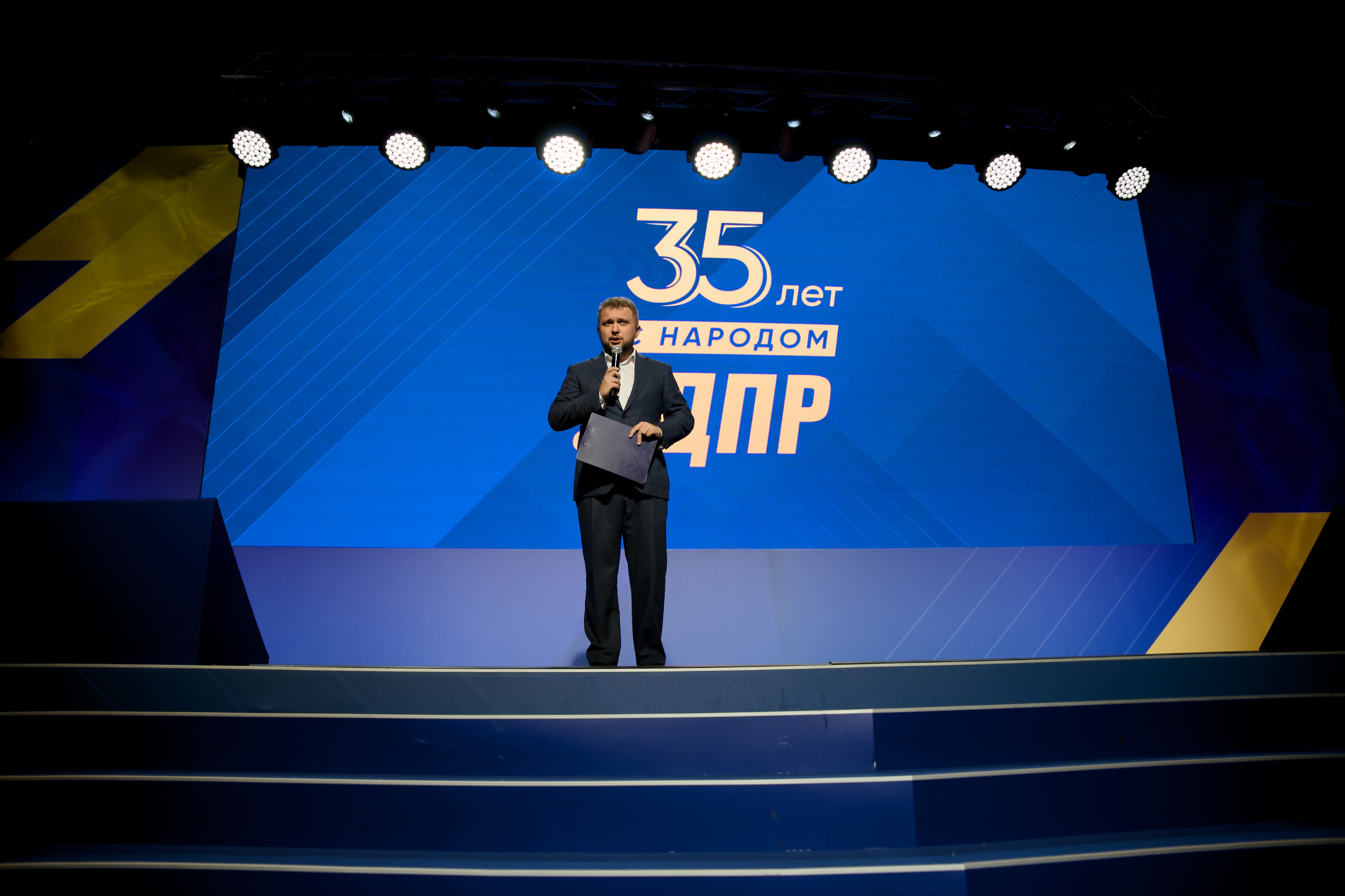 С 35-летним юбилеем ЛДПР поздравил Президент России Владимир Путин, приветственный адрес главы государства зачитал первый заместитель руководителя Администрации Президента России Сергей Кириенко.