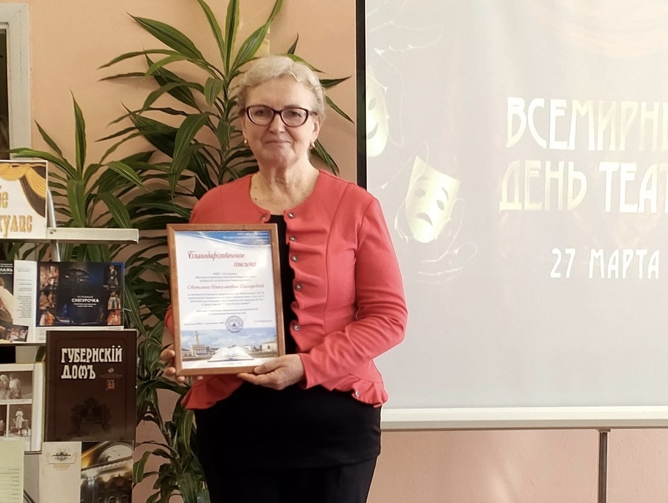 На вечере партийцу вручили Благодарственное письмо МБУ города Костромы «Централизованная библиотечная система». Ее поблагодарили за активное участие в мероприятиях библиотеки, проведение творческих встреч, участие в поэтических чтениях и других мероприятиях. Это еще одно признание значительного вклада в развитие культуры и литературы Костромы, а также активной гражданской позиции Светланы Писаревой.