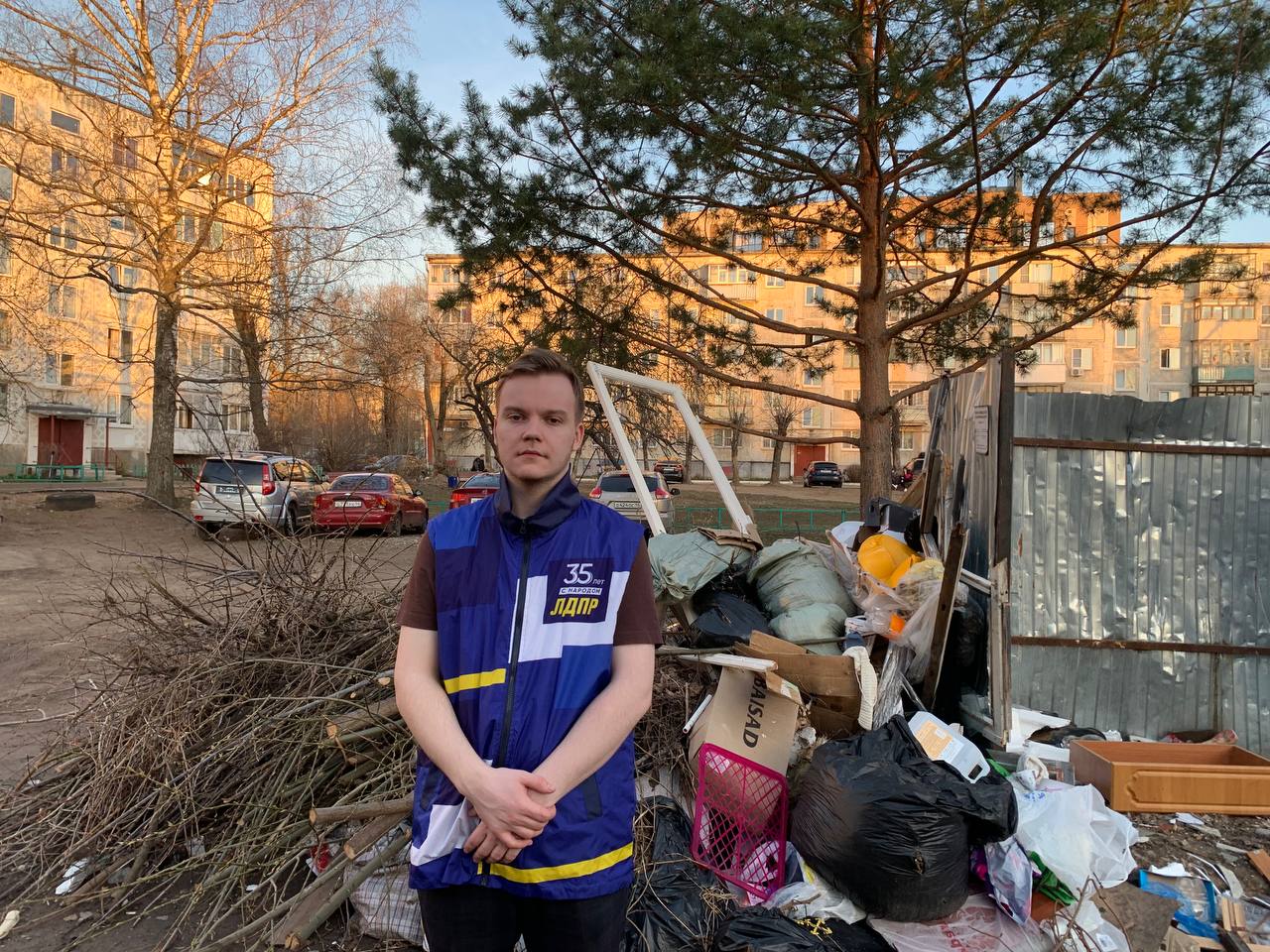 Во время рейда в Фабричном районе Костромы активист молодежки Никита Скрябин обнаружил крупную свалку рядом с мусорной площадкой на улице Козуева, 79. Крупногабаритный и прочий мусор здесь свален в беспорядочную кучу, при этом специальный контейнер для таких отходов отсутствует.