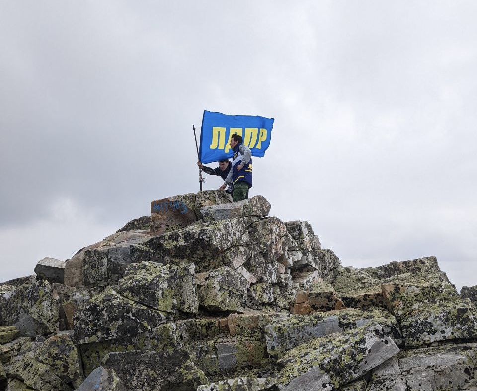 На вершине хребта Евграфовы водрузили флаг ЛДПР. Этим символическим жестом семья выразила свою преданность идеалам партии и уважение к памяти Владимира Жириновского.