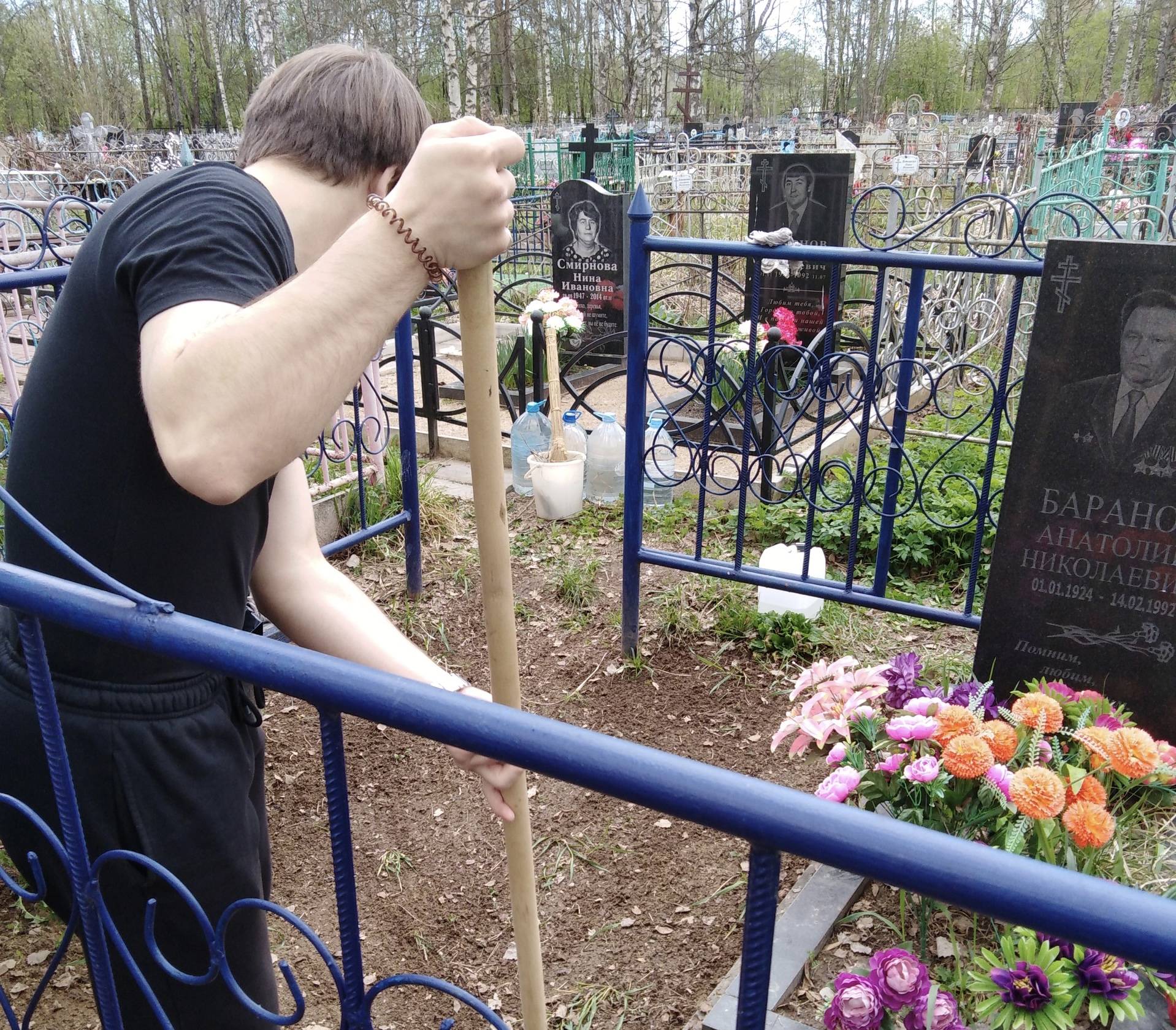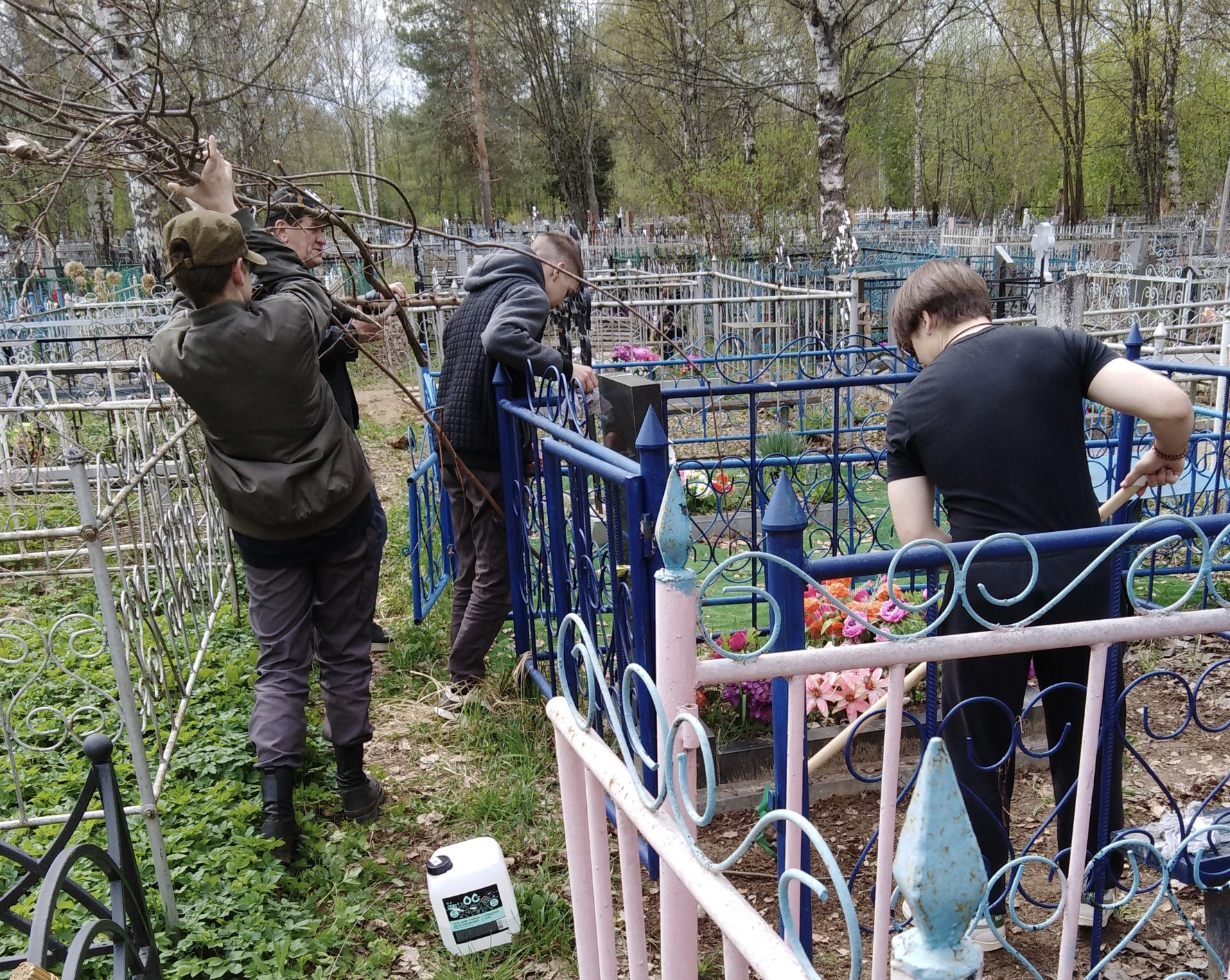 В преддверии Дня Победы волонтеры Волгореченского промышленного техникума вместе с депутатом Думы Волгореченска от ЛДПР Юрием Миндолиным и преподавателем Владимиром Шибачевым прибрались на могиле ветерана Великой Отечественной войны Анатолия Баранова
