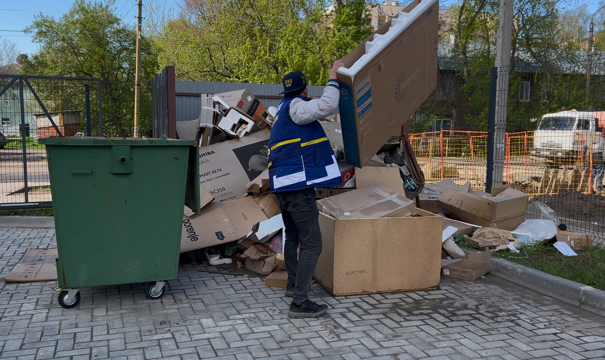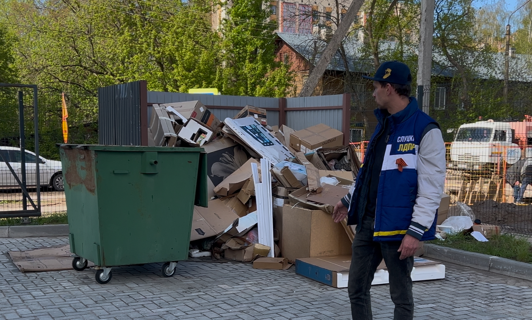 Чтобы выяснить все обстоятельства проблемы, молодежь ЛДПР выехала на место. Увиденное неприятно впечатлило: у мусорных контейнеров образовалась внушительная куча отходов. Здесь лежат и картонные коробки, и строительный мусор, и прочие крупногабаритные предметы.
