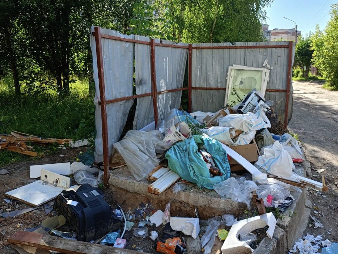 По словам активистов, на площадке нет контейнера для крупногабаритного мусора. Это приводит к тому, что жители оставляют отходы прямо на бетонном основании, мусор разлетается по округе и превращает площадку в настоящую свалку.