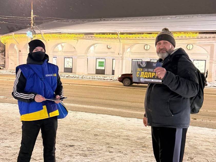 Партийцы поздравляют земляков с наступающим 2026 годом и распространяют специальный новогодний выпуск газеты. Он с сюрпризом: в номере опубликованы условия розыгрыша ценных призов от ЛДПР, в том числе нового отечественного автомобиля. Участвовать в розыгрыше может любой желающий, достаточно лишь оформить заявку до 8 января.