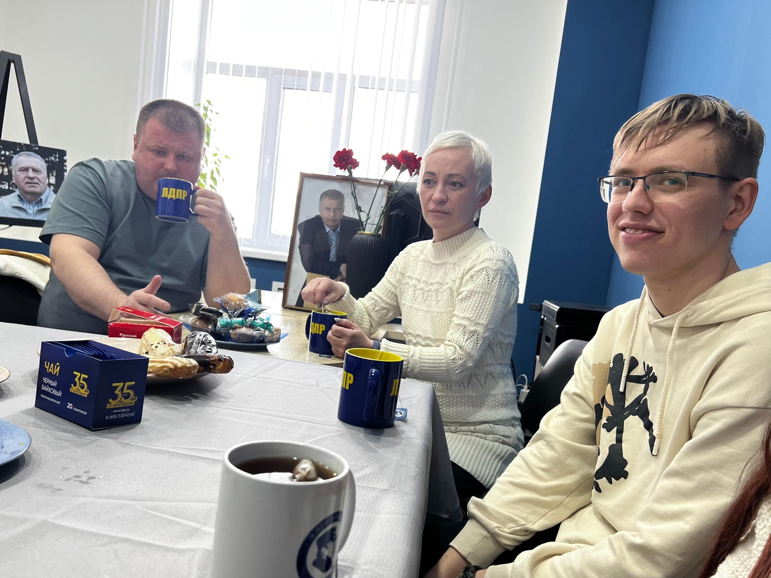 Чаепитие в штабе давно стало не просто традицией, а возможностью поговорить по душам. За чаем костромичи вспоминали, каким Владимир Вольфович был на слётах и съездах — громким, искромётным, но говорившим всегда по делу. Делились историями личных встреч. Говорили и о визитах Жириновского в Костромскую область — а их было не меньше восьми. Последний раз он приезжал к нам в сентябре 2015-го, тогда шла избирательная кампания, и его появление, как всегда, всколыхнуло весь город.
