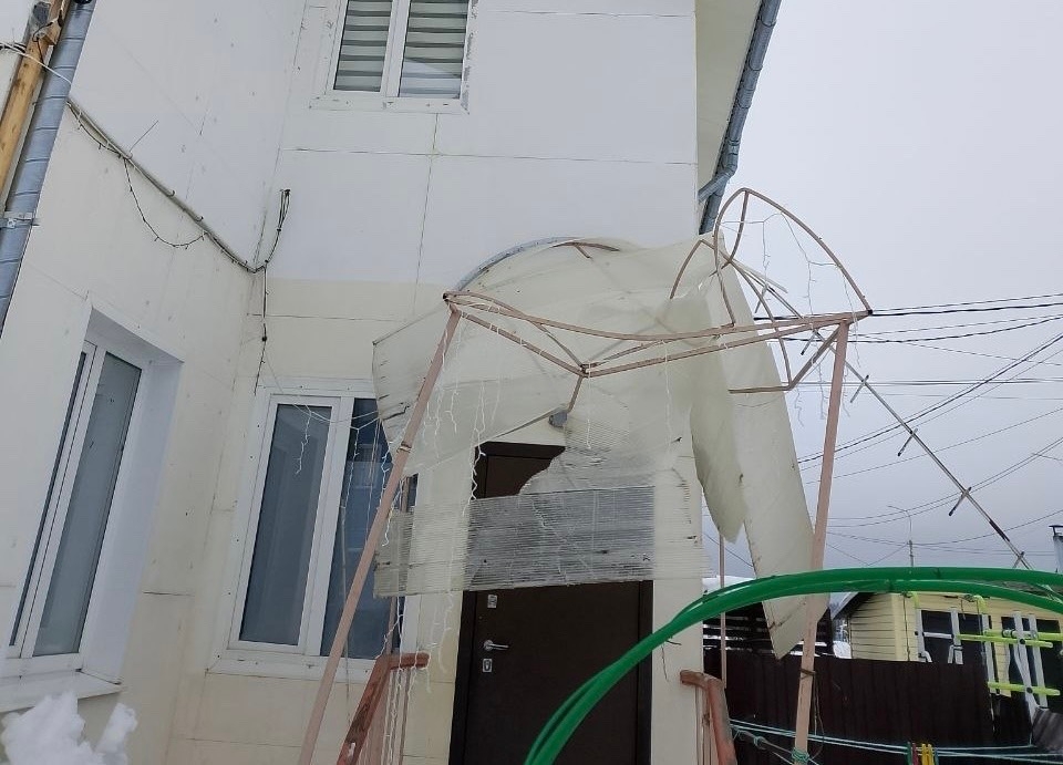 Особое внимание привлек инцидент в поселке Первый. Там с крыши одного из домов снег уже сошел. Масса упала прямо на козырек у входа в подъезд и повредила его. К счастью, в тот момент никто не пострадал.