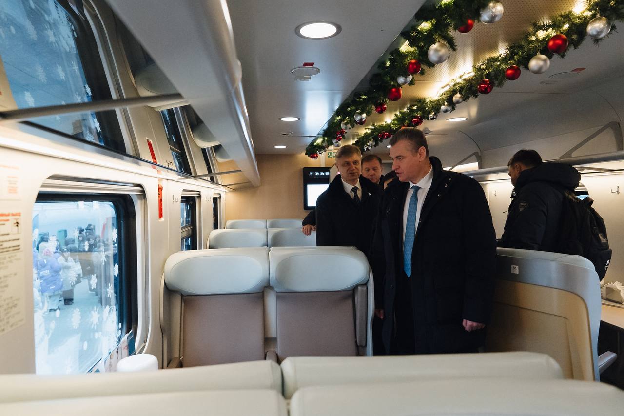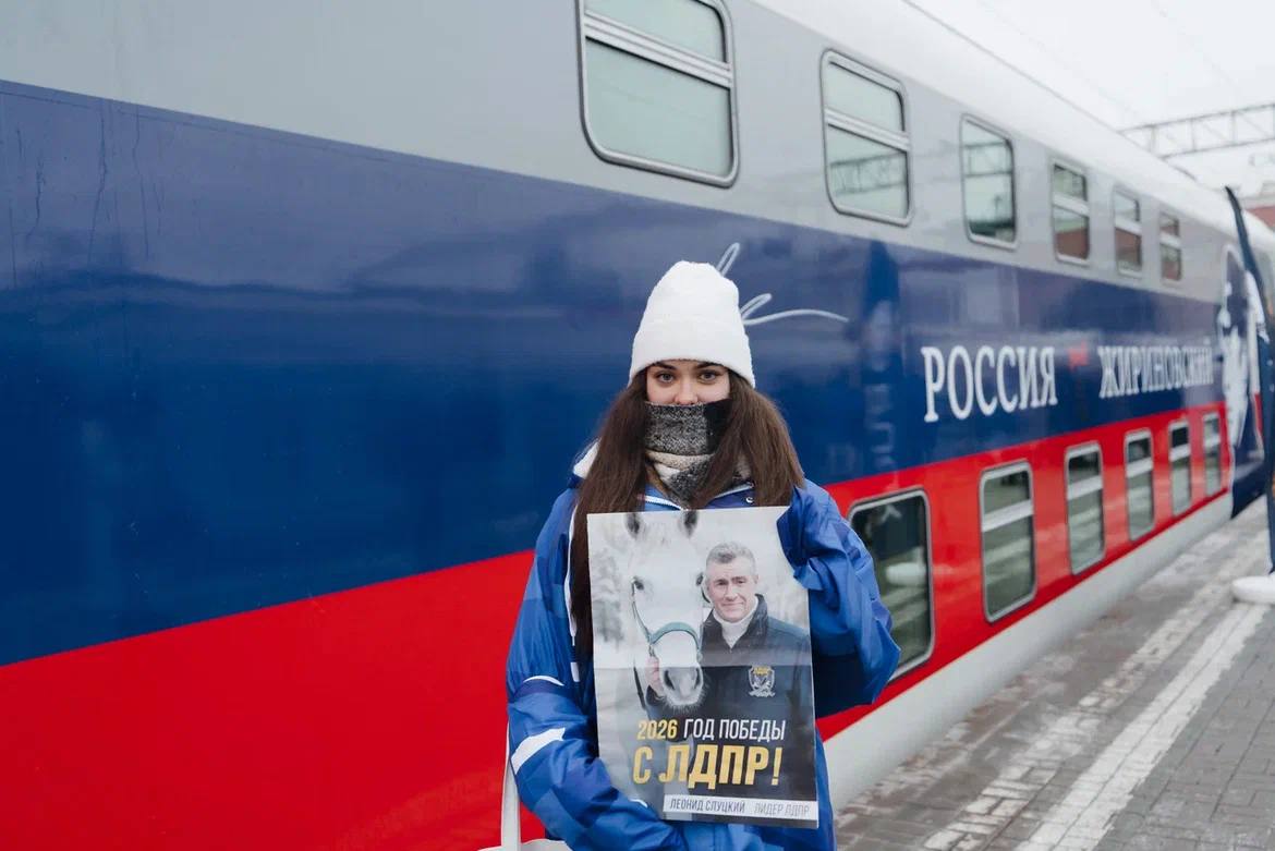 В первый рейс отправился двухэтажный поезд с тематическим вагоном «Россия. Жириновский»