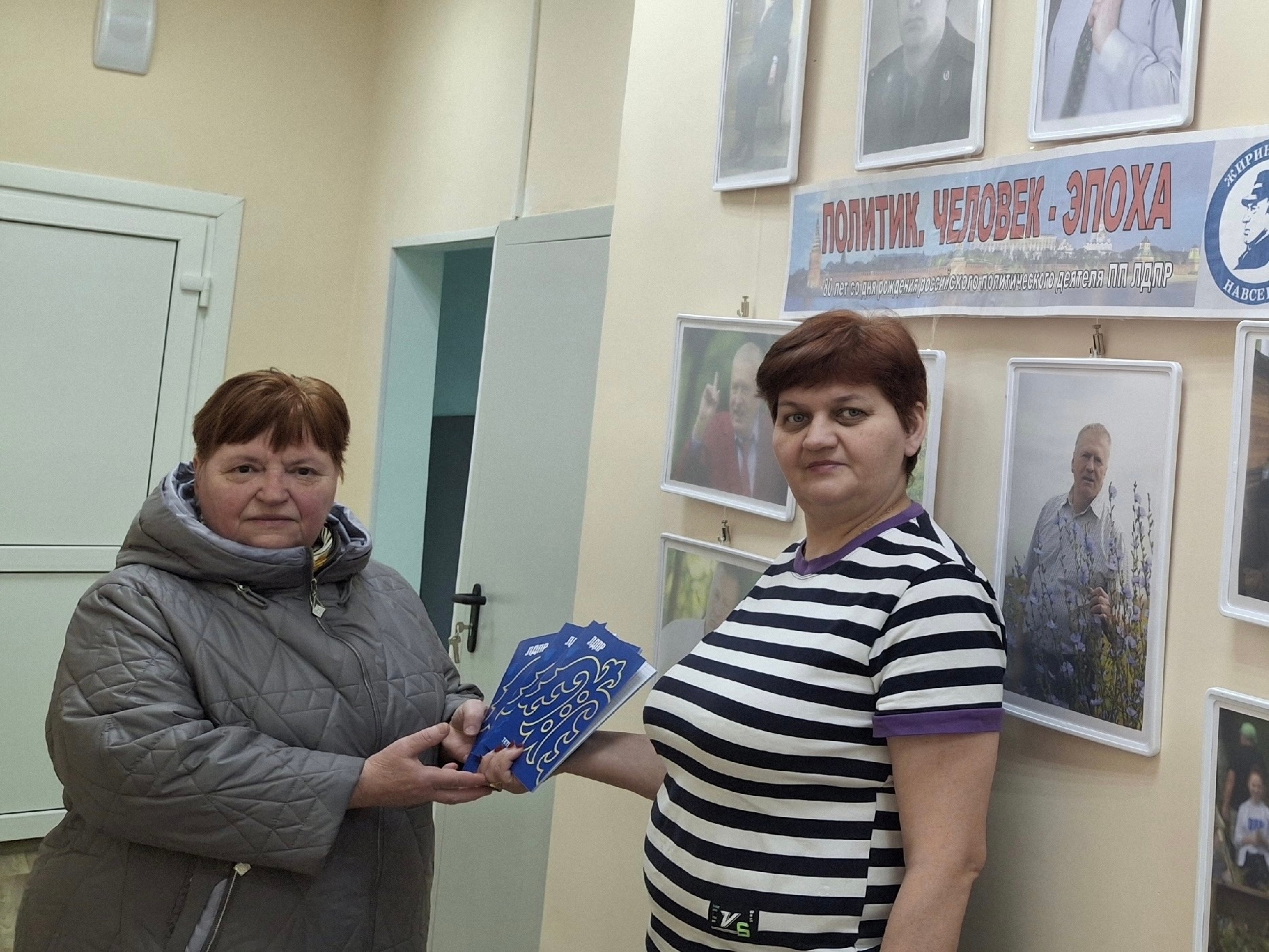 Первым посетителям выставки в этот день устроили по-настоящему радостный прием. В память о великом политике и в знак того, что его дело продолжает жить в сердцах сторонников, гости получили подарки от ЛДПР.