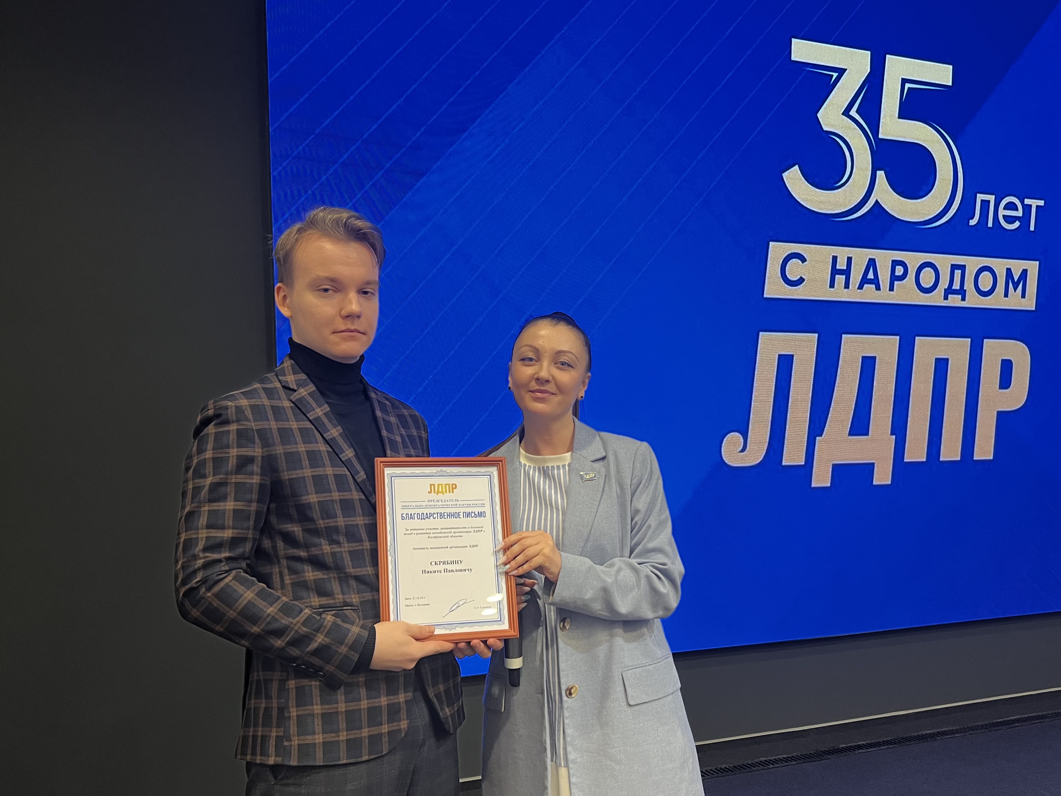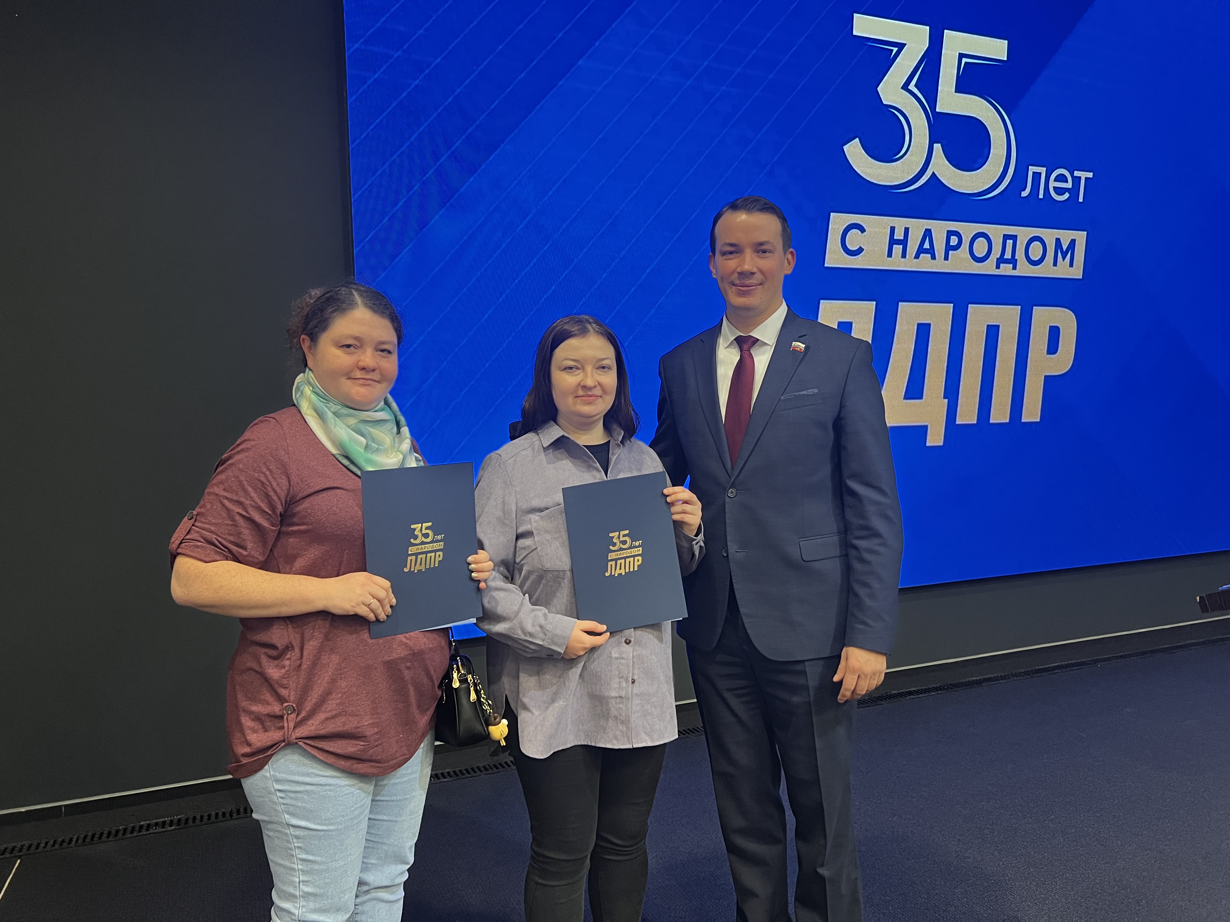 Отдельные поздравление прозвучали в адрес молодежи ЛДПР. Многие из ребят приняли участие в установлении рекорда России - самого массового единовременного вступления в партию. Его зафиксировали во время проведения юбилейной выставки «ЛДПР: 35 лет с народом» на ВДНХ. Самым активным вручила награды руководитель молодежи ЛДПР в Костромской области Ирина Пономарева.