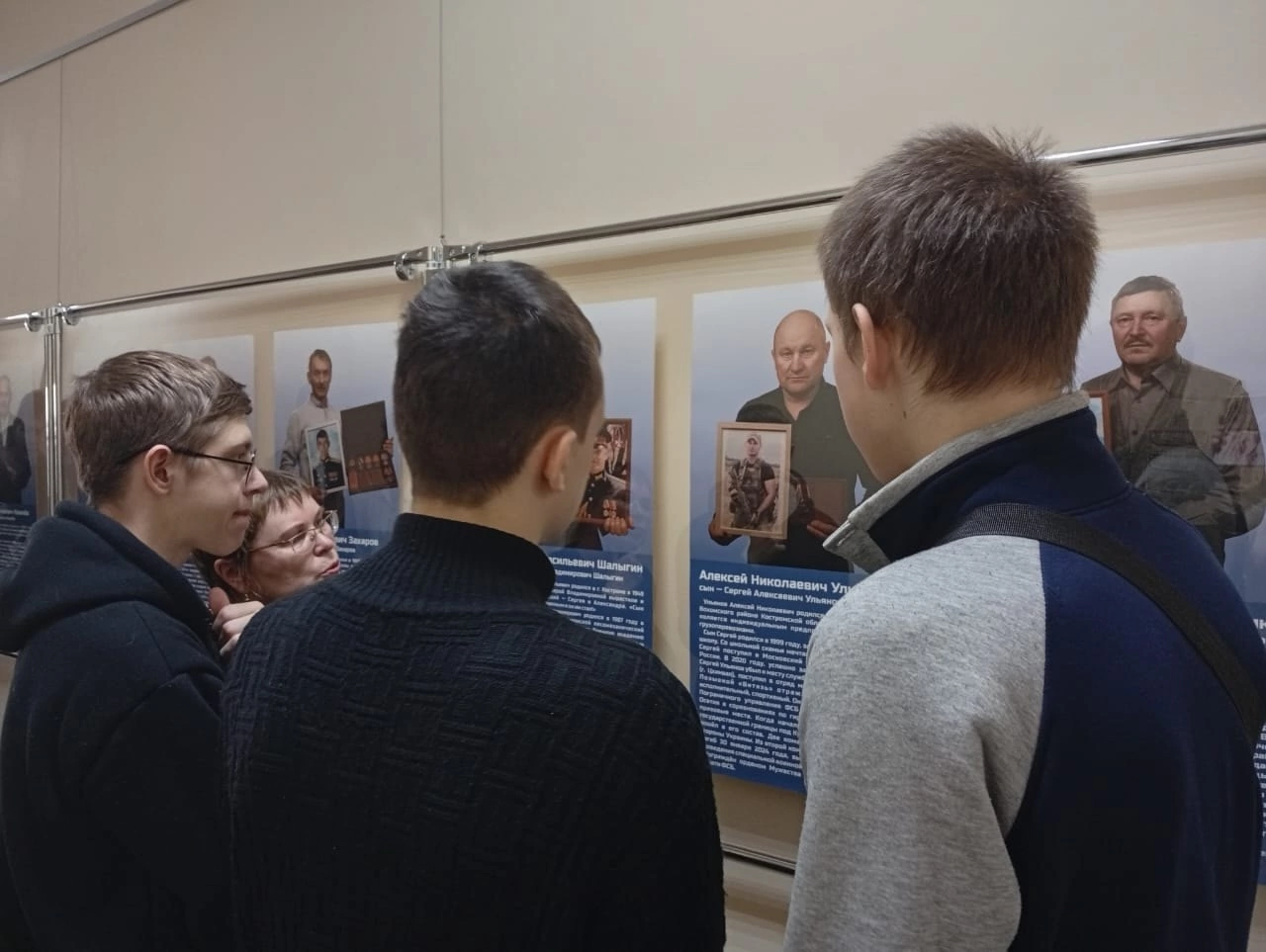 Экспозиция произвела на школьников сильное впечатление. Портреты костромичей, держащих в руках фотографии своих погибших сыновей, как и истории подвигов героев, никого не оставили равнодушным.