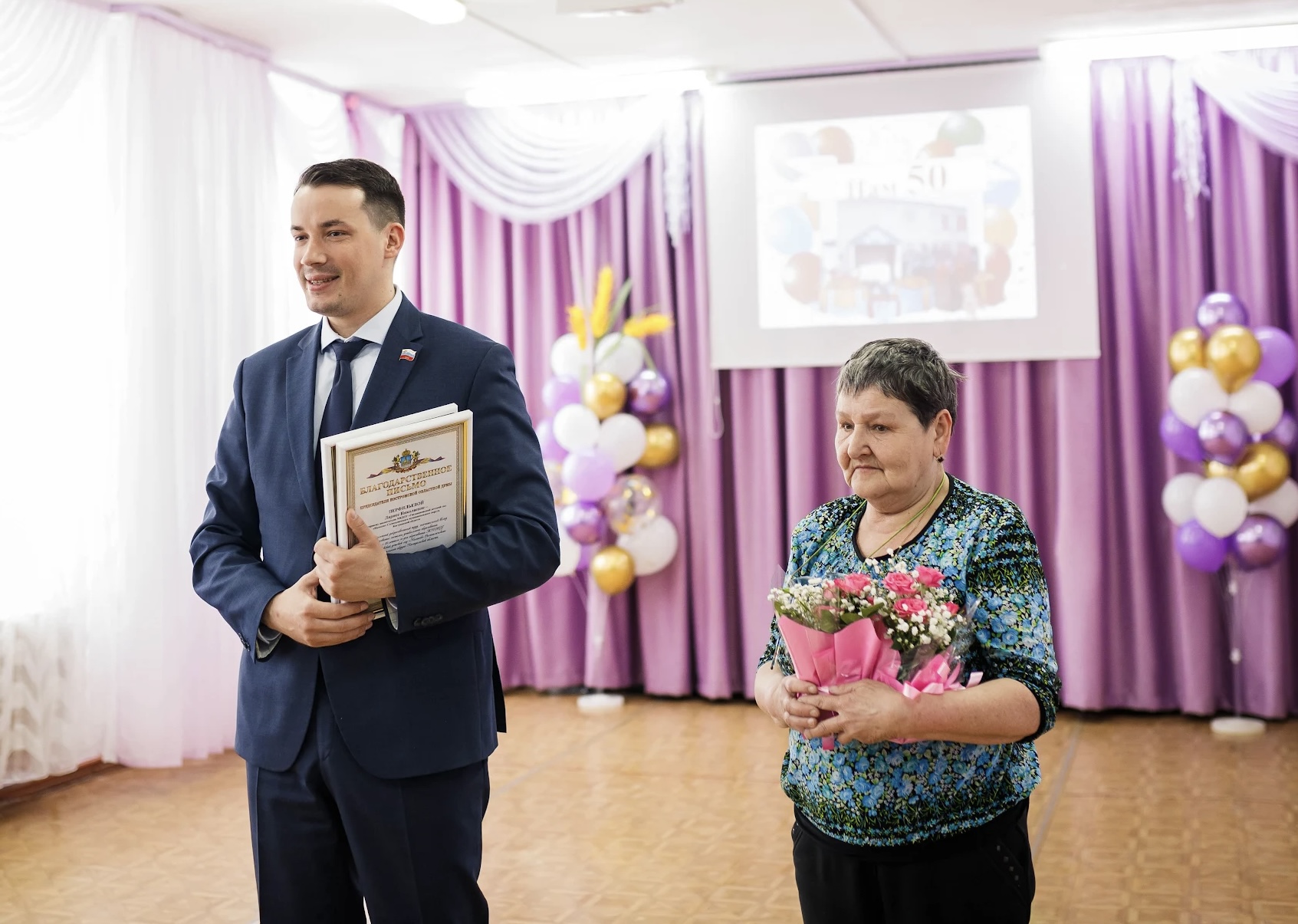 Вместе с депутатом окружной Думы от ЛДПР Галиной Евграфовой Руслан Владимирович поздравил всех участников торжества. Он отметил: 50-летний юбилей – не просто дата, это целая эпоха, наполненная любовью, заботой и преданностью делу воспитания подрастающего поколения.