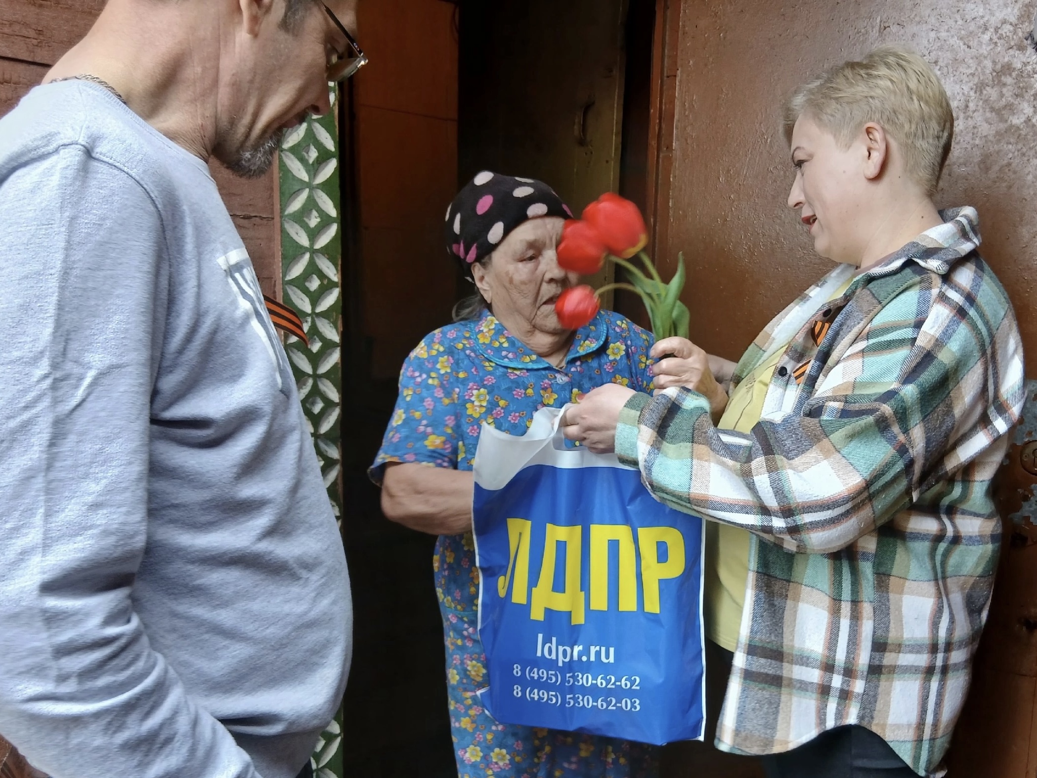 Партийцы Алексей Силонов и Наталья Лузина навестили ветеранов и тружеников тыла, проживающих по соседству, и вручили подарки от ЛДПР. Антонина Александровна Шаптюлёва была тронута вниманием и заботой. Августа Павловна Павлова накануне отметила свой 94-й день рождения. Раиса Александровна Раева в следующем году отметит свой 100-летний юбилей.